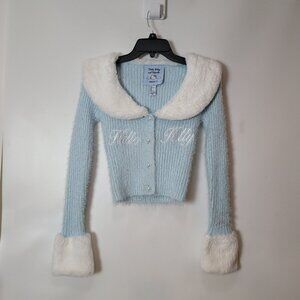 Hello Kitty & Friends X Forever 21 Blue Knit Cardigan W/Faux Fur Collar & Cuff