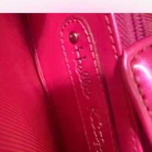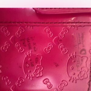 Bright fuchsia wallet with embossed Hello Kitty design. Stylish and playful accessory.