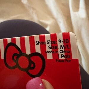 Adorable slippers with Hello Kitty design. Features red and black colors. Soft and comfortable.