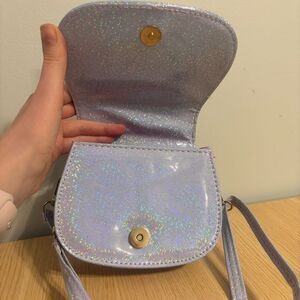 Cute Hello Kitty girls handbag with glitter finish and confetti. Features a pearl handle and crossbody strap.