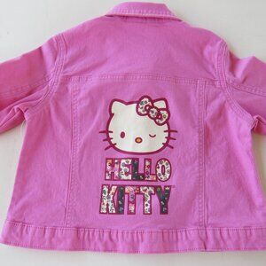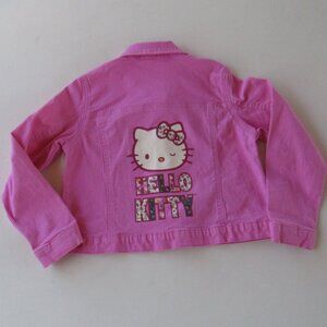 Hello Kitty Girl's Pink Collared Snap Button Light Denim Jean Jacket Size 8