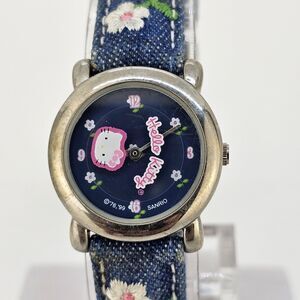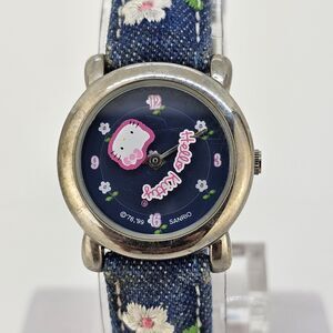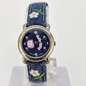 Hello Kitty Girls Watch 26MM Blue Dial Blue Denim Leather Bands New Battery