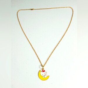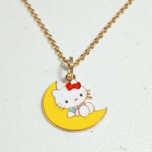 Hello Kitty Gold Plated Yellow Moon Pendant Necklace New