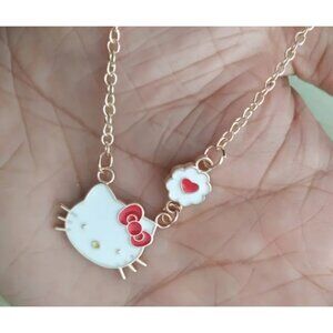 Hello Kitty Gold-Tone Enamel Necklace – Cute Pendant Charm with Chain