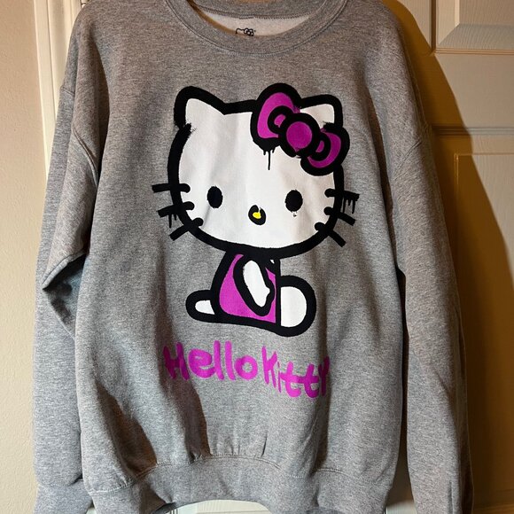 Hello Kitty Graphic Crewneck Sweatshirt - Gray with Pink & Black - Medium