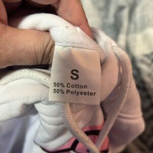 This adorable Hello Kitty hoodie is perfect for any fan! It features a classic Hello Kitty graphic on the front, complete with pink hearts and stars. Made from a comfortable 50% cotton and 50% polyester blend, it's perfect for cozy days and casual wear. Measurements: Pit to Pit: 17 inches Length: 24 inches Hoodie, Hello Kitty, Sanrio, Graphic, Small, Cotton Blend Polyester Kawaii Cute Casual Sweatshirt