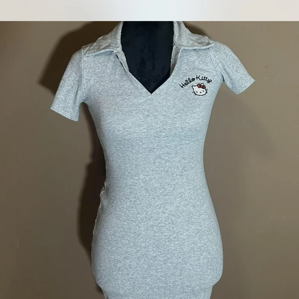 Chic gray ribbed top with Hello Kitty label. Ideal for everyday wear.