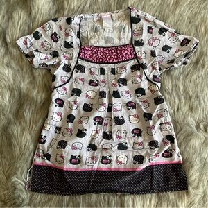 Hello Kitty htf tooniforms by Cherokee cute coquette scrub top. Features hello Kitty pattern with bows and black and pink polka dots. Seaming at shoulders and cinched waist in the back. 100% cotton very comfortable. TTS and in great condition. Perfect for pediatrics office