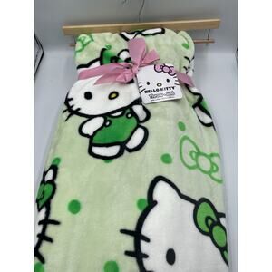 Hello Kitty Green Polka Dot & Bows St Patrick's Day Throw Blanket 60x70 NEW