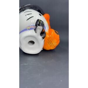 Add some spooky charm to your Halloween decor with this adorable Hello Kitty figurine. The small figurine features a witchy, black cat design with a pumpkin and leaves, perfect for any Halloween occasion. Made by Blue Sky, this figurine is a must-have for both adults and kids alike. The white color adds a touch of elegance to the piece, and it was manufactured in China for high-quality assurance. Celebrate the season with this delightful figurine that will surely bring a smile to your face.
