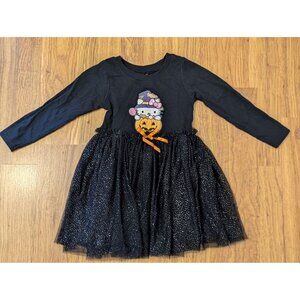 Hello Kitty Halloween Dress 3T By Sanrio Black Long Sleeve Pumpkin Glitter Tulle