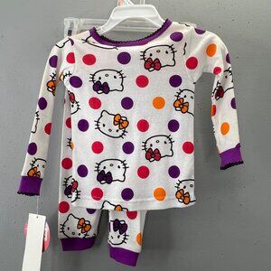 New with tags Hello Kitty Halloween pajama set. 2 pieces includes shirt and pants in orange, purple and white. Size 12 months.