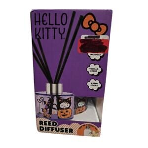 Bring festive fragrance and charm into your space with this Hello Kitty Halloween reed diffuser. Featuring a spooky-cute Hello Kitty design with pumpkins, this set includes a glass diffuser jar, vanilla-scented , and black reed sticks. Perfect for adding a subtle seasonal aroma to your home or gifting to a Hello Kitty fan. Brand new in box.