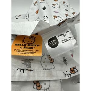 . This full-size sheet is perfect for decorating a child's bedroom during Halloween. With a multicolor design and Hello Kitty theme, this sheet is sure to add a fun and festive touch to the room. Ideal for fans of the Hello Kitty character family, this product is both practical and stylish for creating a cozy and playful environment. Non stains or smells