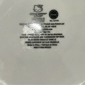 Adorable Hello Kitty ceramic plate. Features black and gray accents. Perfect for fans.