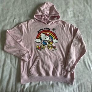Hello Kitty Hoodie Womens Large Pale Pink Rainbow Bicycle Sanrio BioWorld 2023 Graphic