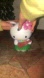 Adorable Hello Kitty figurine wearing a green hula skirt and pink flower. Perfect for collectors. Double A operated. Excellent condition
