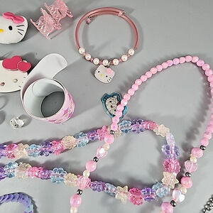 Hello Kitty Jewelry Lot in Hello Kitty Plastic Container Vintage