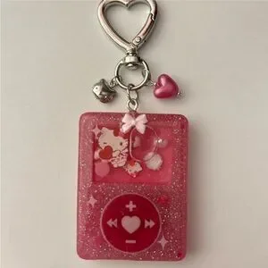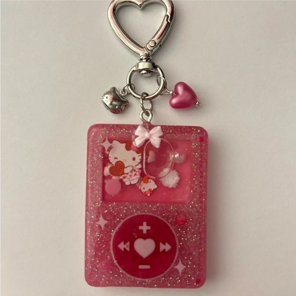 hello kitty love heart mp3 player hand made resin shaker quicksand keychain bag accessory