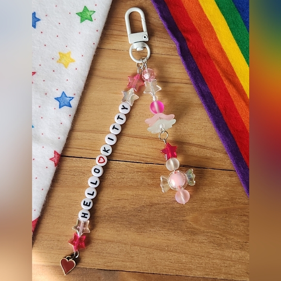 Adorable accessory featuring pink beads and charming star details. Perfect for adding a playful touch on your bag, backpack. Handmade.If you want it customized, I can make it for!!!