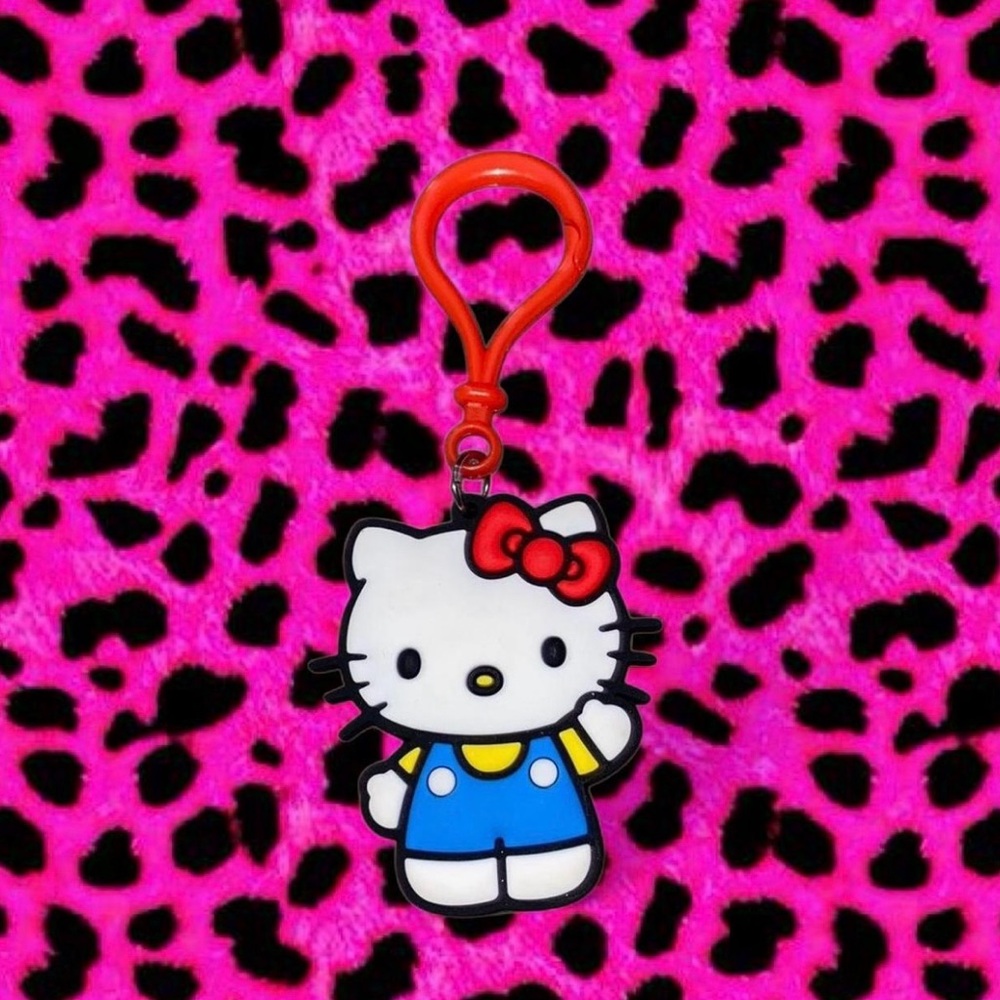 Charming Hello Kitty lanyard with a cute keychain. Features pink and blue colors. Ideal for kids' accessories.