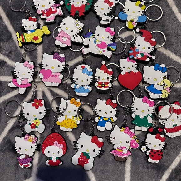 Adorable Hello Kitty keychains in various outfits. Perfect for fans and collectors. 24 keychains