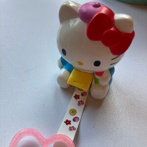 4 adorable Hello Kitty keychains and a sticker dispenser from the early 2000s. One keychain is another sticker dispenser. Original stickers included. The apple keychain also doubles as a picture combination lock! Good condition.