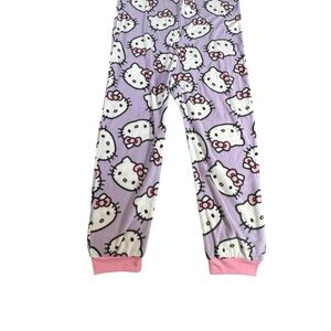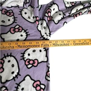 Snuggle up in cuteness with this officially licensed Hello Kitty fleece onesie pajama set! Designed in a soft lavender purple with an adorable all-over Hello Kitty face print, this one-piece features a zip front and cozy hood with Hello Kitty’s face, ears, and signature bow. Made from flame-resistant 100% polyester fleece, it’s perfect for sleepovers, lounging, or gifting to your favorite Hello Kitty fan. Size L (10/12) – see photos for measurements and condition.
