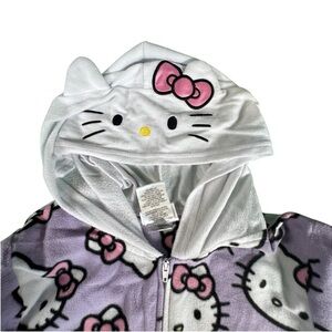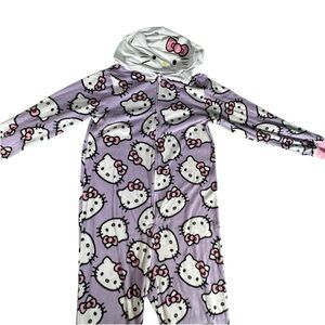 Hello Kitty Kids Onesie Pajamas L 10/12 Hooded Zip Fleece Purple Pink