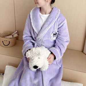 Soft lavender robe with Hello Kitty design. Cozy and stylish for bedtime. From Pet and smoke free home only used a few times. Could fit from 6 to 8 years old size small