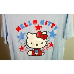 Hello Kitty Light Blue T-shirt in Women's XL. This cute tee features a classic Hello Kitty design on a soft, light blue fabric. Perfect for casual wear or as a fun addition to your collection! Grab it now to add a touch of kawaii to your wardrobe!