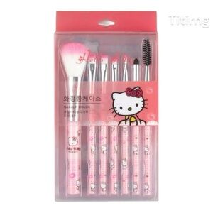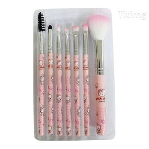 "Makeup brush set inspired by Hello Kitty, ideal for lovers of makeup and kawaii aesthetics. This set includes 7 brushes with pink handles decorated with the iconic Hello Kitty design. Perfect for applying foundation, shadow, eyeliner and more. An ideal gift for Hello Kitty fans or for those looking to add an adorable touch to their makeup routine. Make your beauty routine even more fun!”