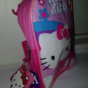 Great for school and travel, this Hello Kitty Mini Backpack features a durable pink nylon and plastic backpack with fun graphics, shiny iridescent pink piping, adjustable straps and a hanging loop for easy storage. Measures approximately 8" x 10.5". For ages 3 and up. Comes packaged with a hang tag.