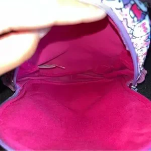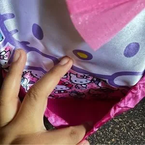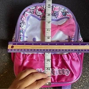 cute hello kitty mini backpack. it’s in very good condition outside but inside does have a little wear. straps are adjustable. measurements provided. official sanrio.