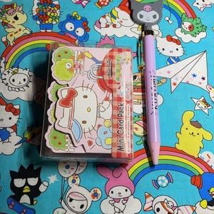Hello Kitty pick nick mini card pack perfect for a simple hello gooodbye hope all is well!! Put a smile on some ones face we all need a little reminder! Pen not included!Great thank you cards!! Comes with 6 cards 6 envelopes and 10 stickers. !’