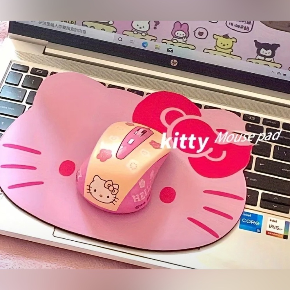 Cute Hello Kitty mousepad in pink and red. Perfect for adding a playful touch to your workspace.