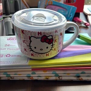 Enjoy your favorite beverage in this charming Hello Kitty mug. Featuring a cute design with red and white colors, it's perfect for any Hello Kitty fan. The included lid keeps your drink warm and spill-free. New no tags