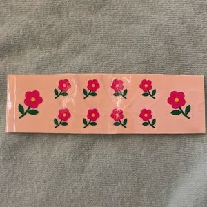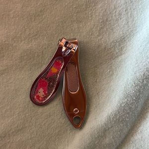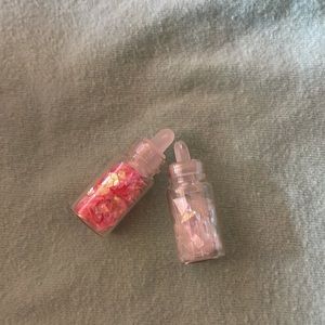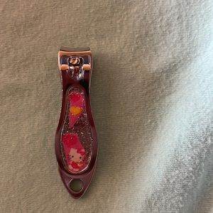 Comes with pink nail color with hello kitty and a balloon on it , 2 mini glitters one white one pink, 1 pink nail brush, 1 white nail file, 1 set of 10 pink flower nail stickers, 3 stretchy pink bracelets one clear to solid hot pink and 1 cute mini nail clippers with hallo kitty and some balloons on it.