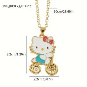 Hello Kitty Necklace Bicycle Bike Pendant Gold Sanrio Goth Emo Scene Rave Enamel