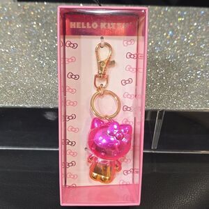Adorable Hello Kitty charm in vibrant pink and shiny gold. Ideal for keys or bags.