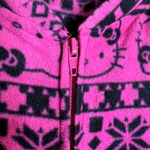 Add a touch of fun to your loungewear collection with this adorable Hello Kitty one-piece jumpsuit. Designed in a playful pink color and made from soft 100% polyester, this jumpsuit features a convenient front zipper for easy wear. Available in women's size large, it combines comfort and whimsical style, perfect for relaxing or casual outings.