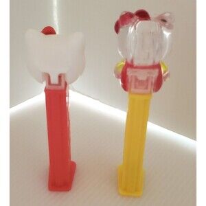 Hello Kitty PEZ Candy Dispensers Set Of 2 Lot Crystal Clear Red Bow Sanrio Cat