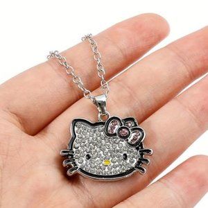 Hello Kitty Pendant Necklace, Rhinestones Sanrio Kitty necklace Hello Kitty Pend