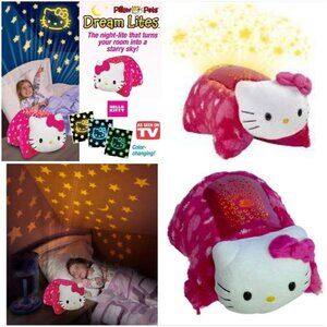 hello kitty plush, dream lites, night light, Sanrio, hello kitty, stuffed animal, pillow pets, kids toy, bedtime comfort, star projector, pink plush, cute gift, children's room, soft pillow, sleep aid