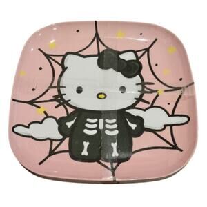 Keywords: Hello Kitty Halloween plates, skeleton Hello Kitty dishware, pink melamine plate set, spooky cute tableware, Sanrio collectible kitchenware.