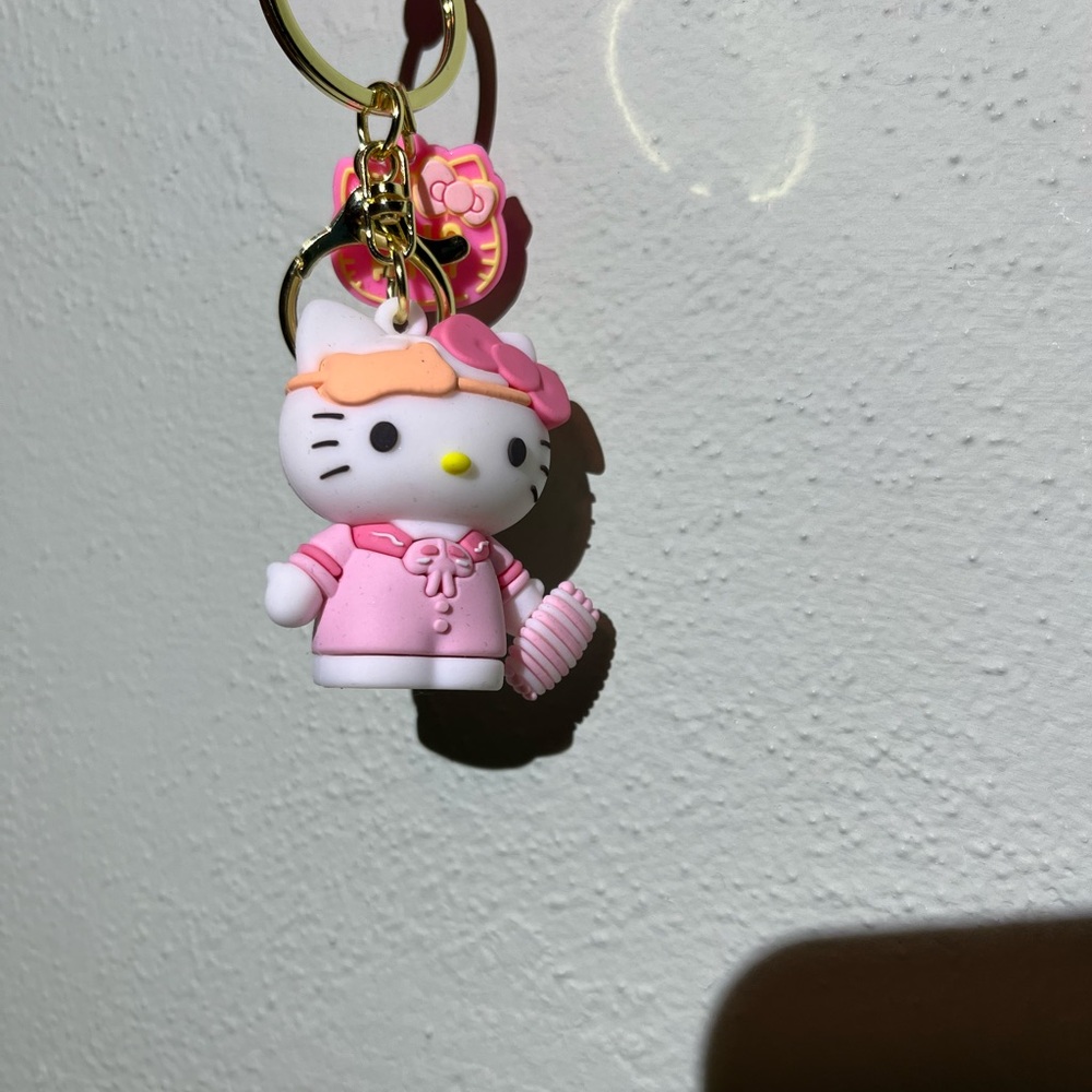 Adorable Hello Kitty keychain in pink. Features a cute design with a bow and dress. Brand new