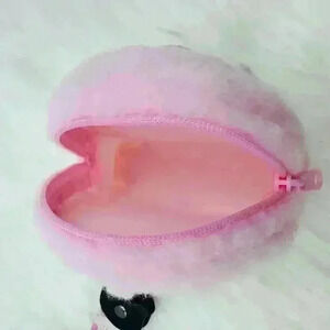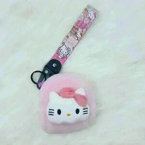 Hello Kitty Pink Plush Coin Purse Keychain. The soft pink plush zippered coin purse measures 4” x 3.5”, perfectly fitting coins, credit cards, cash, and small accessories like lip balm.
