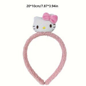 Add a fun and functional touch to your daily routine with this Hello Kitty pink plush headband. Designed with a soft, fluffy texture and a playful cartoon-style Hello Kitty face and bow, this headband is perfect for holding hair back while washing your face, applying makeup, or relaxing at home.