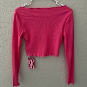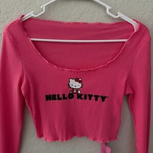 Cute pink ribbed crop top featuring Hello Kitty graphic. Long sleeves and scoop neckline. BRAND NEW with tags. Price firm.