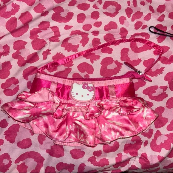 Charming Hello Kitty shoulder bag. Features pink ruffles and iconic Hello Kitty design. Perfect for fans.